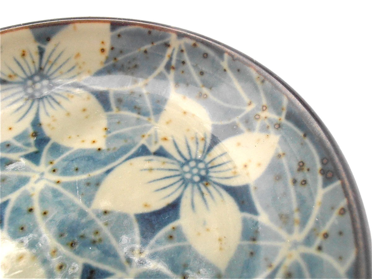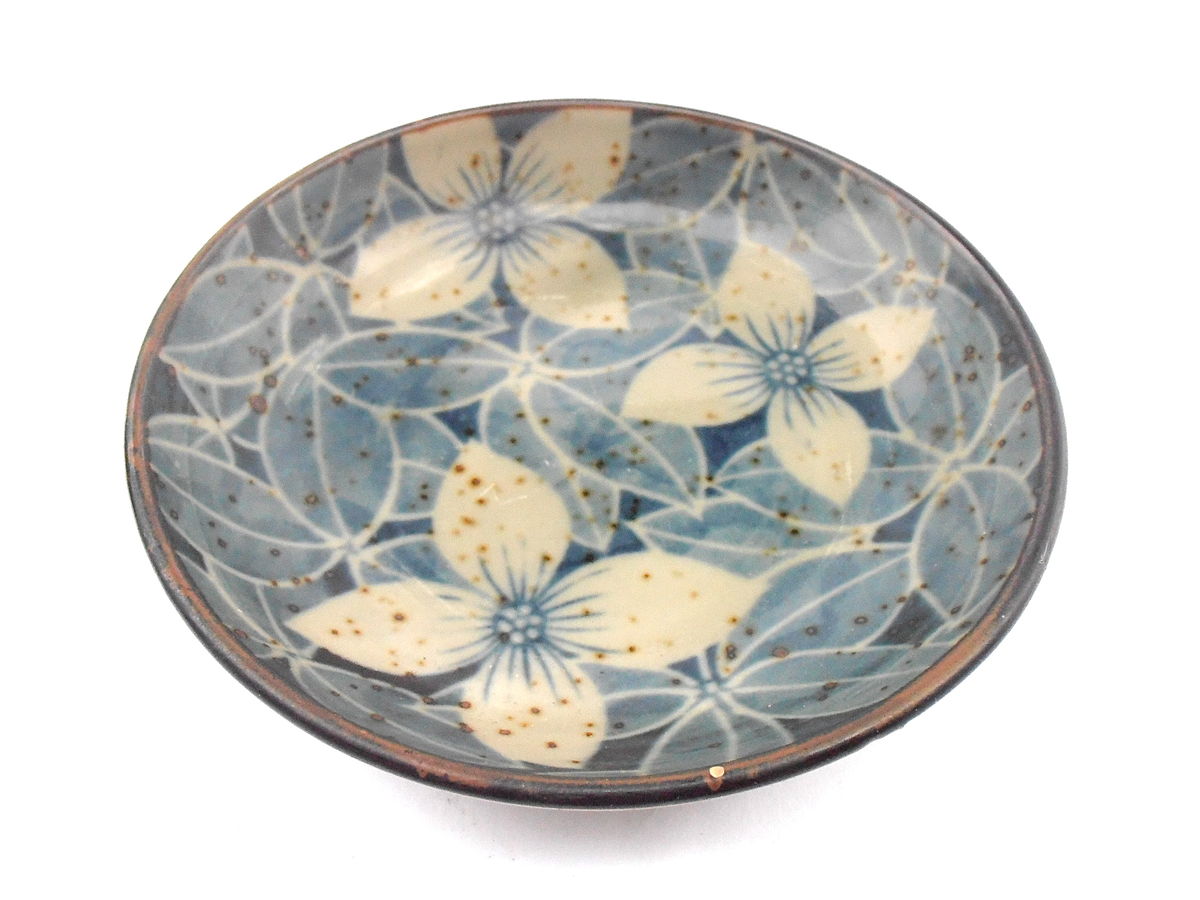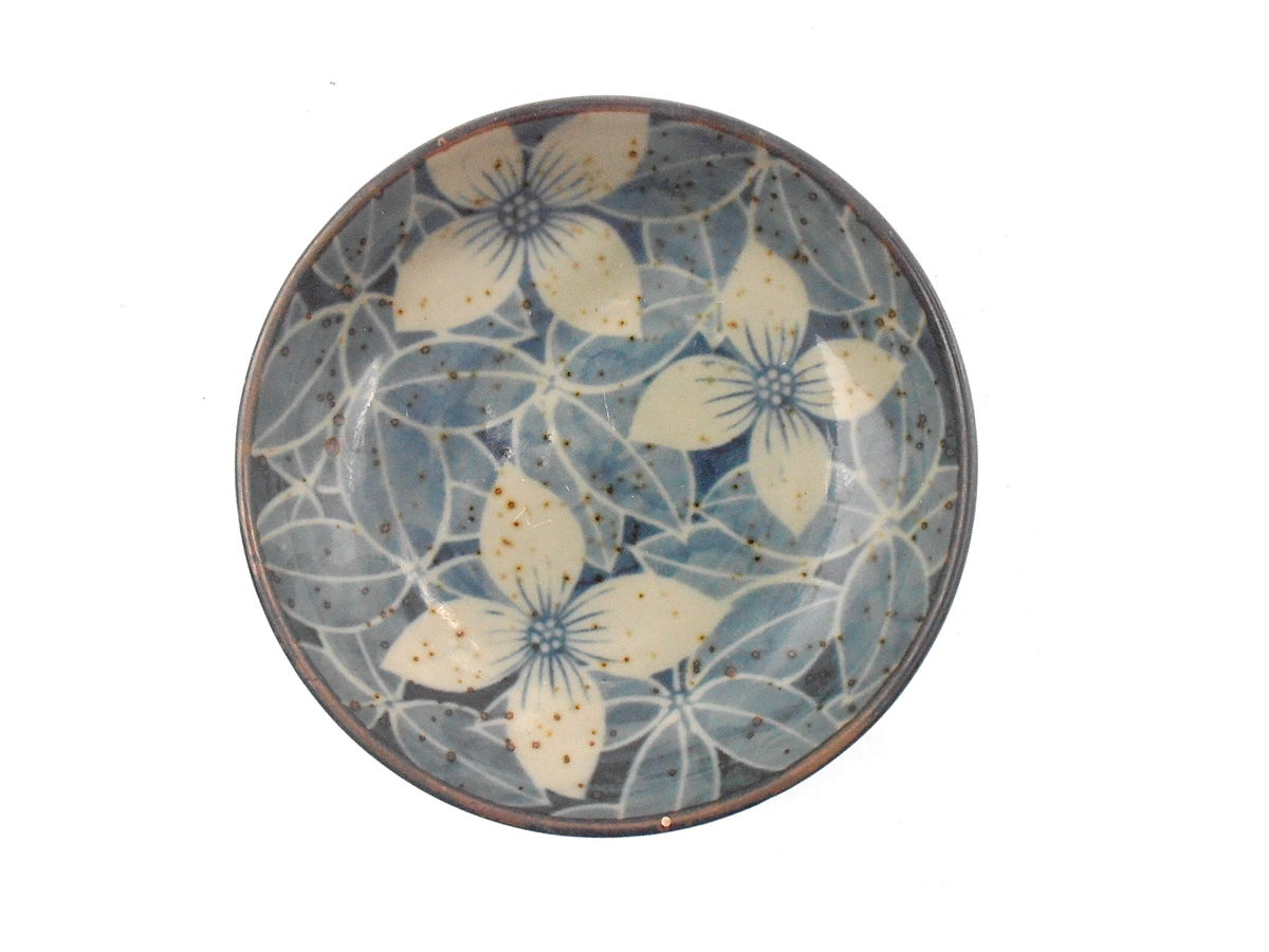 Vintage Flower Blue Miniature Tray Brown Mini Ceramic Japanese Pottery Floral Leaf Relish Condiment Saucer China Plate