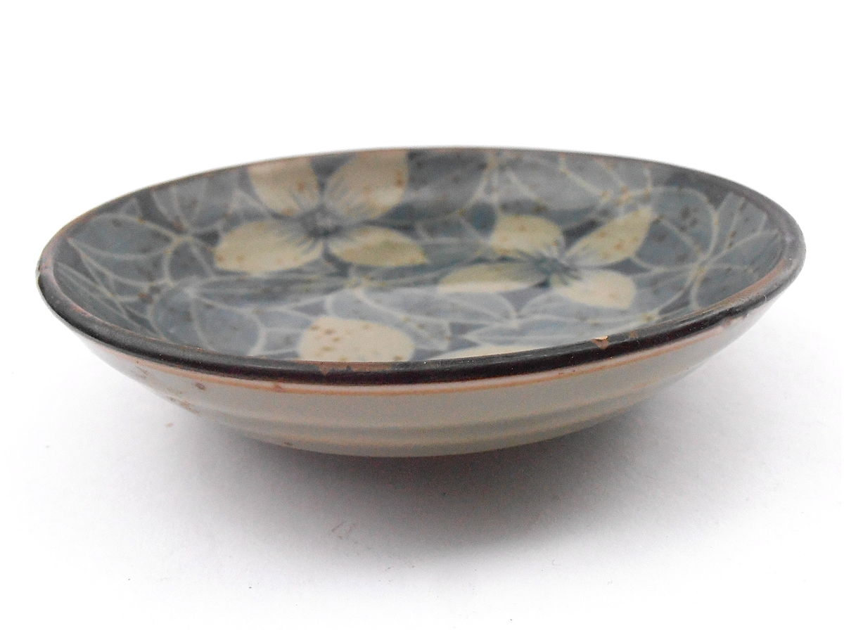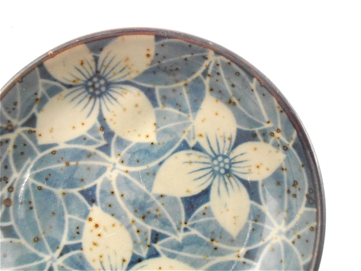 Vintage Flower Blue Miniature Tray Brown Mini Ceramic Japanese Pottery Floral Leaf Relish Condiment Saucer China Plate listed in: