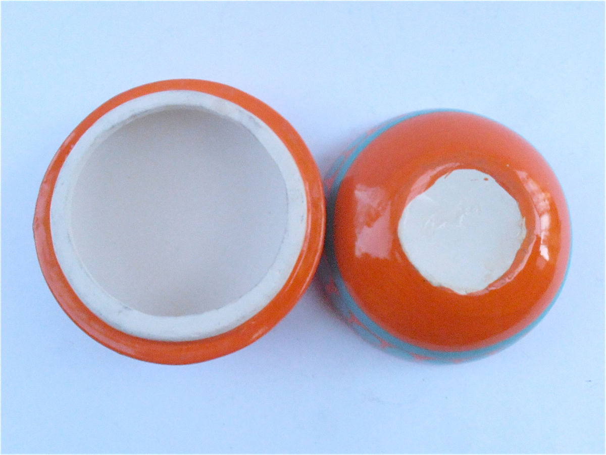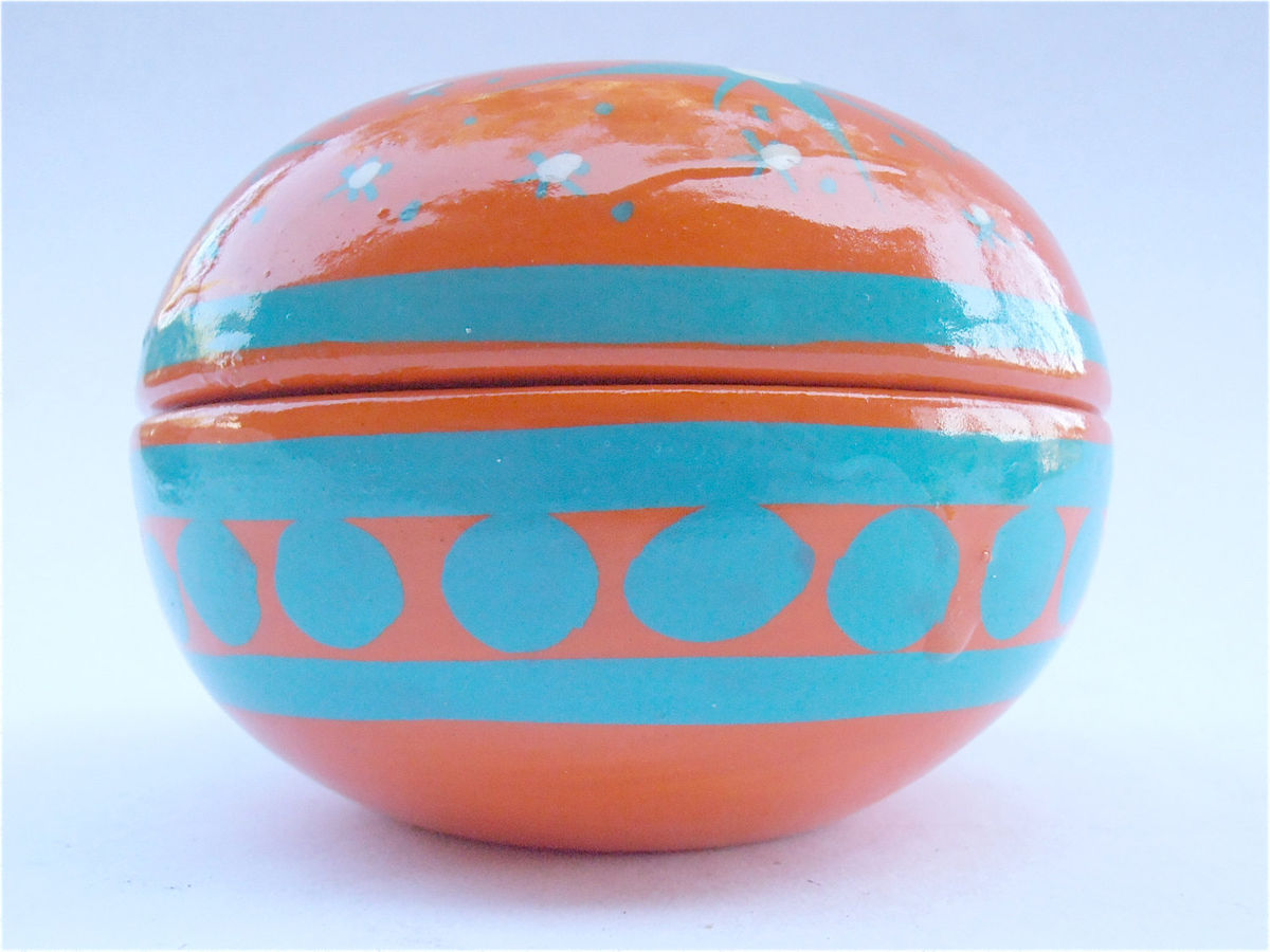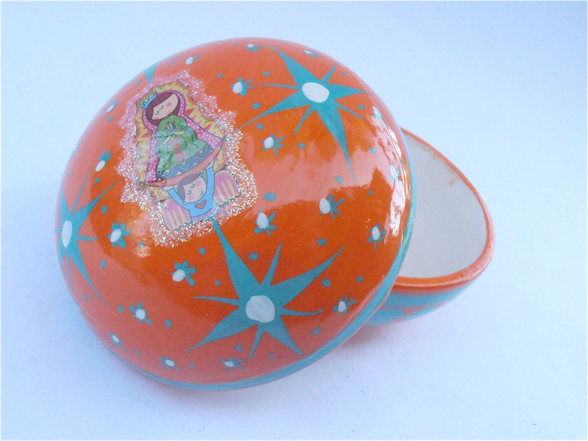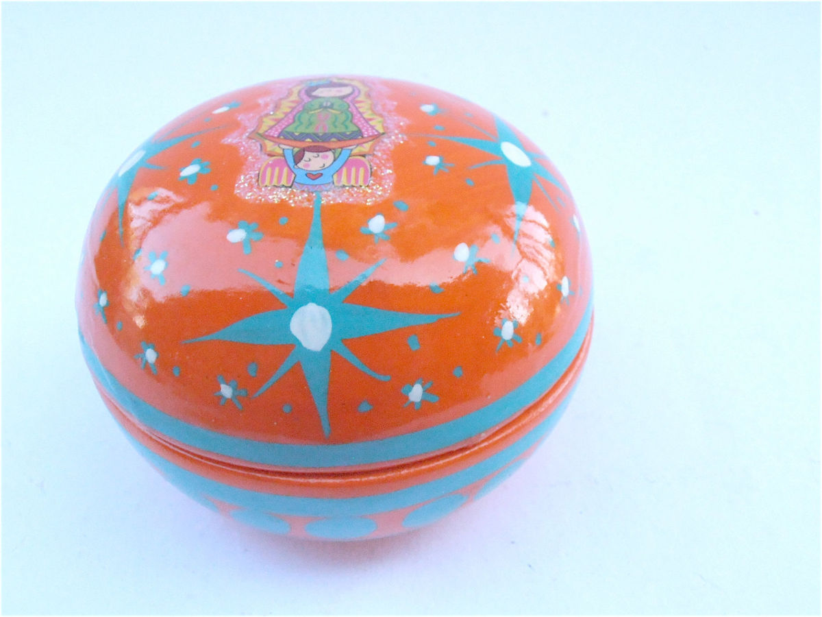 Vintage Painted Orange Teal Round Box Vintage Ceramic Box Little Girl Box Teal Orange Jewelry Trinket Box Vtg Star Ceramic Orange Pottery