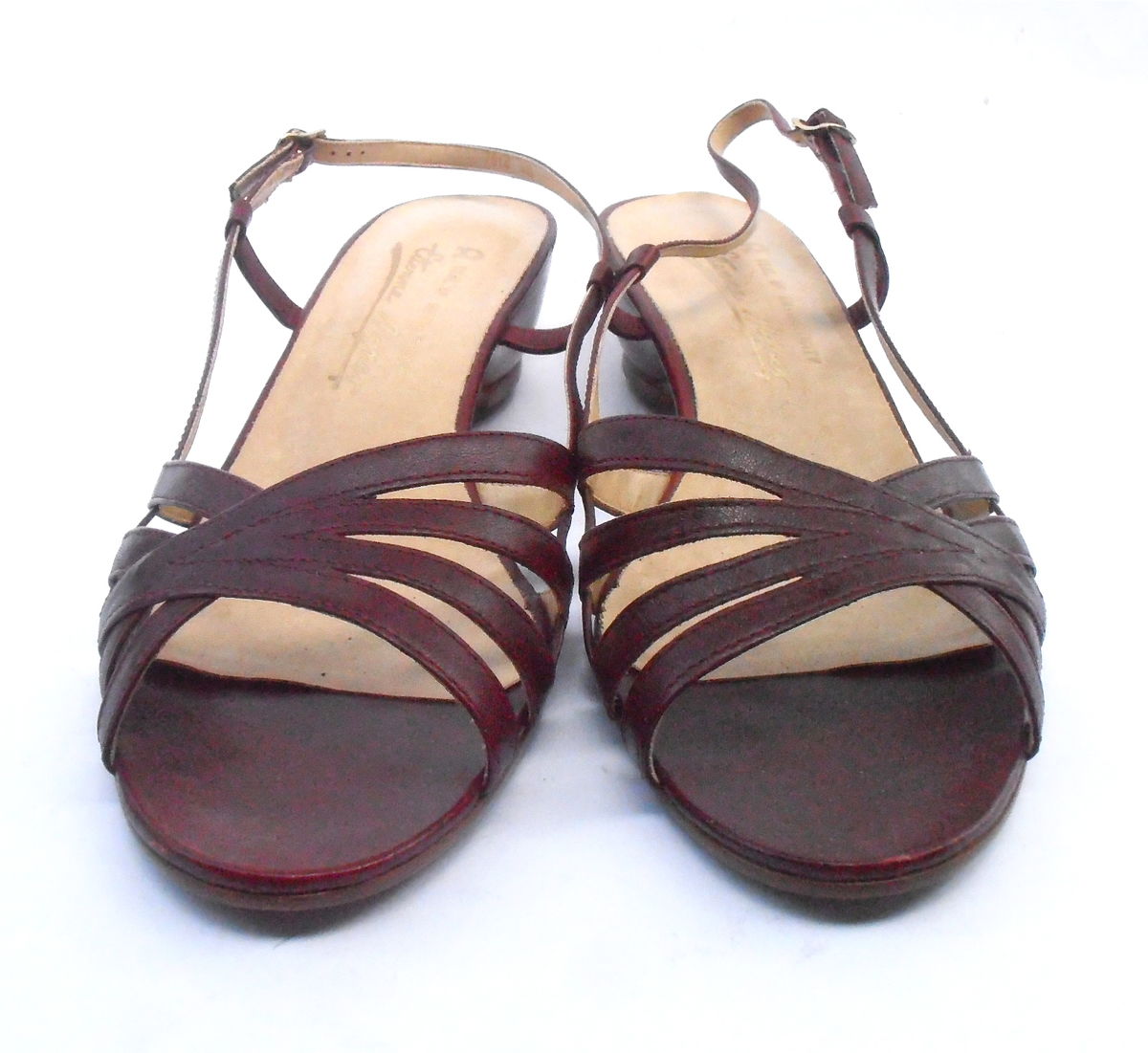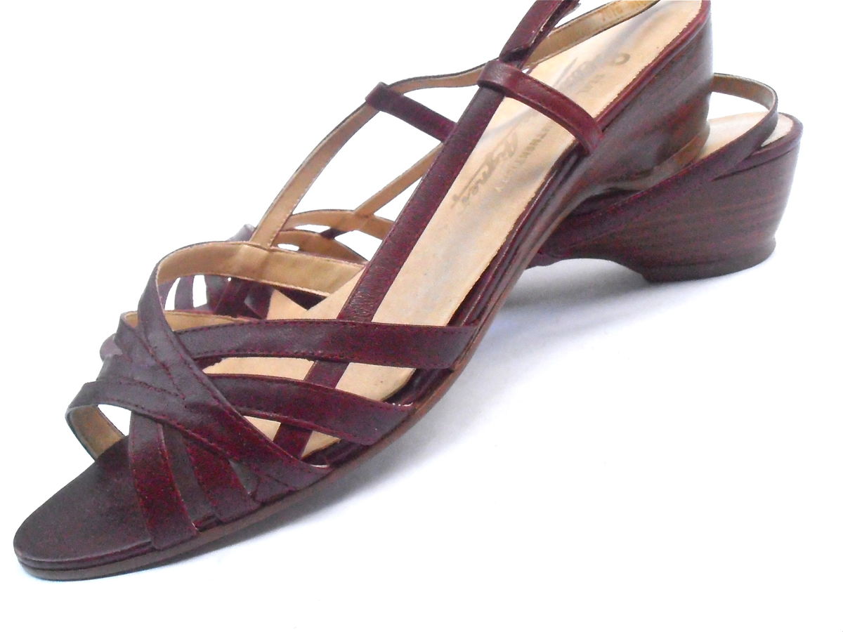 Vintage Strappy Burgundy Maroon Oxblood Sandals Etienne Aigner Designer Ladies Womens Shoes US Size 9M Low Wooden Stacked Heels Wedge EU 40 listed in: