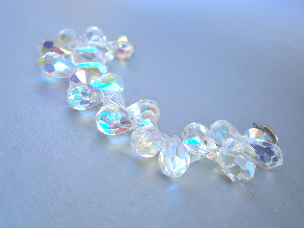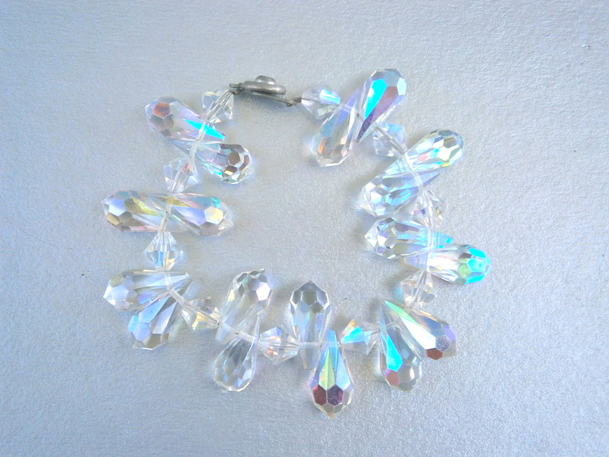 Vintage Teardrop Crystal Bracelet 7” Inch Aurora Borealis Swarovski Elements Rainbow Art Deco Faceted Nouveau Iridescent Rainbow Brilliant
